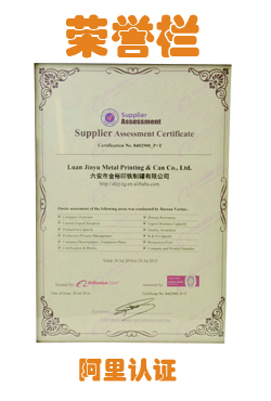 金裕制罐獲得的阿里巴巴認(rèn)證